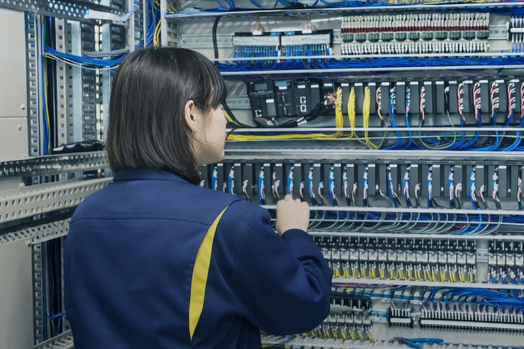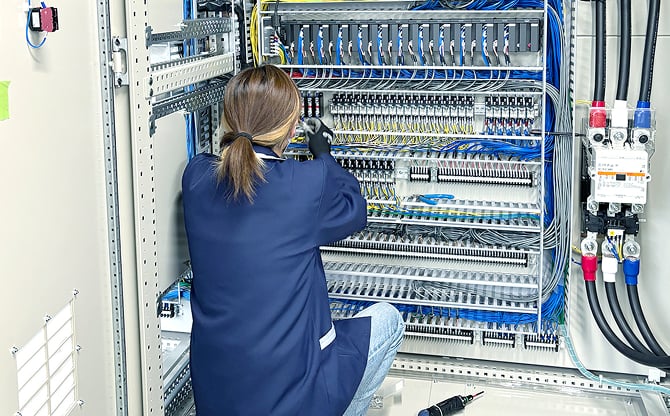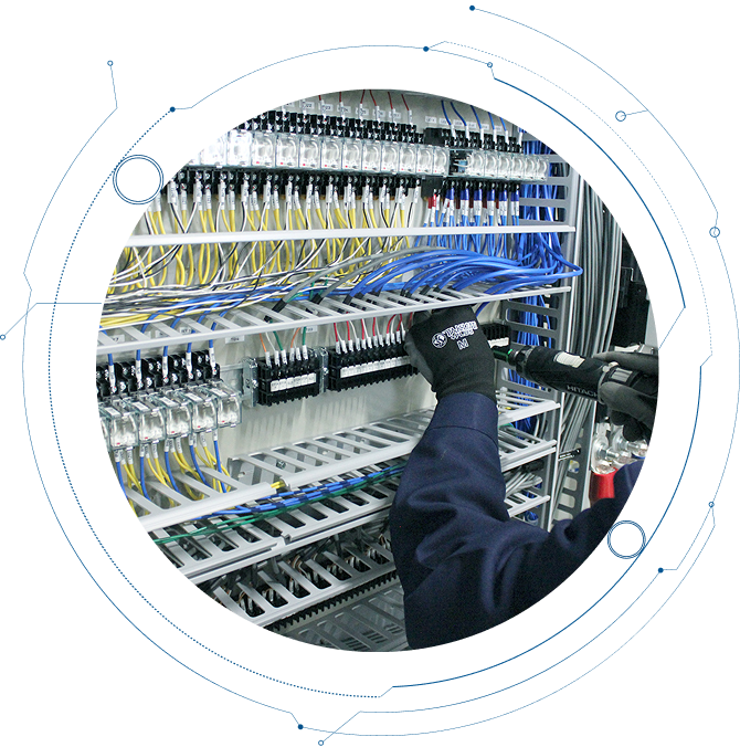 制御盤やユニットの配線・結線を、熟練の技術者が一本ずつ丁寧に施工。